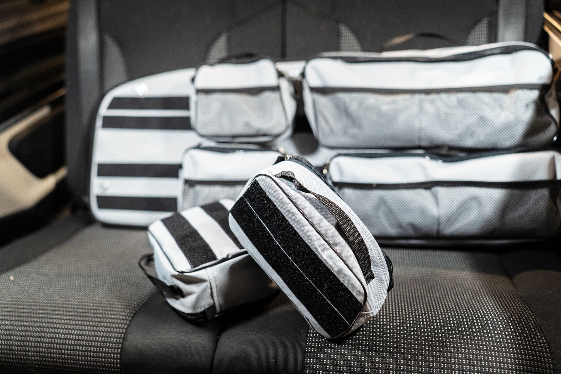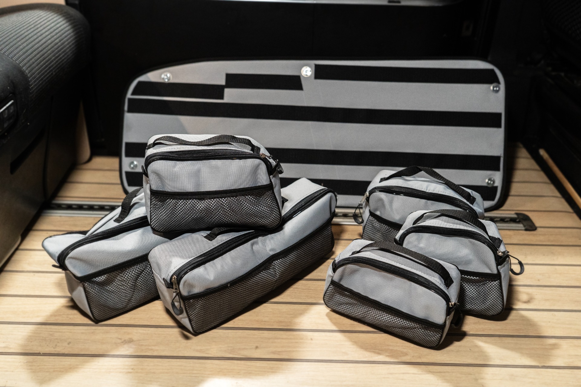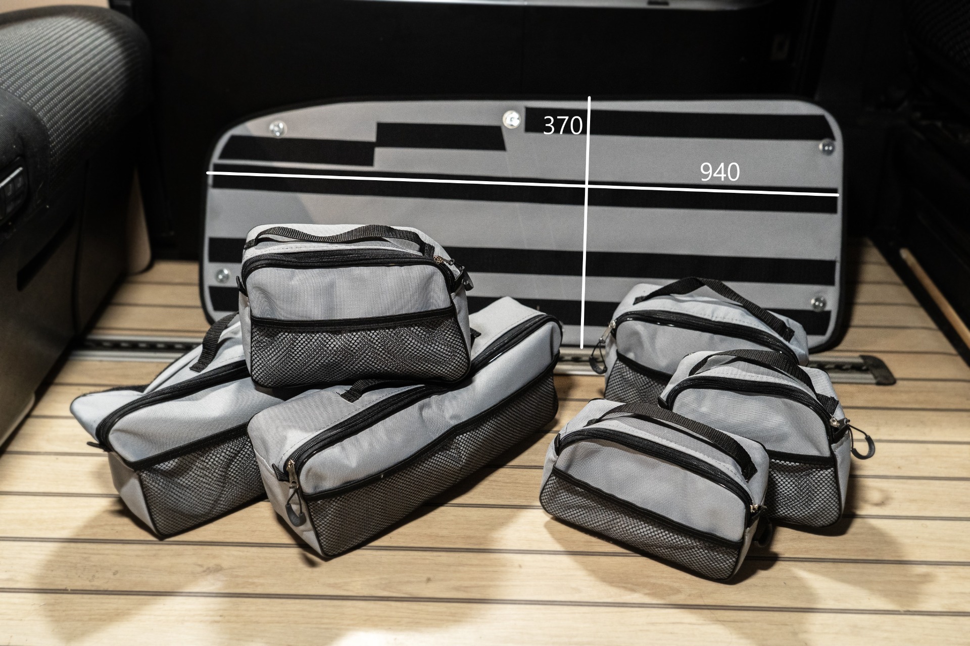 Jelikož odkládacích prostor při cestování není nikdy dost, nabízím možnost výroby taškových organizérů. Organizéry jsou navrženy pro dokonalé uspořádaní věcí potřebných na cestování a vyrobeny z pevného materiálu. Mohou být vyrobeny ve verzi s odnímatelnými kapsami přichycenými k základně za pomoci